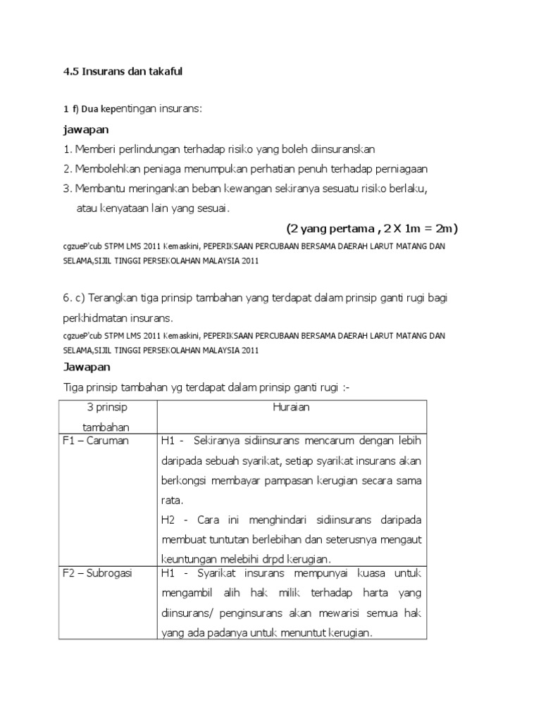 6contoh Soalan Soalan Peperiksaan Asas Takaful Pdf Document